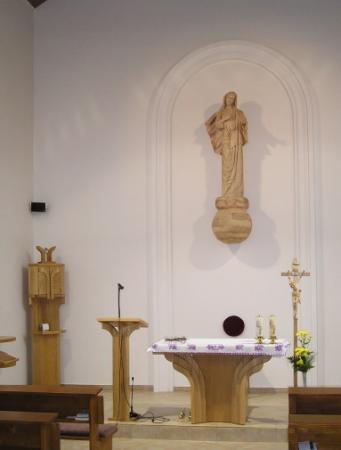 Malý filiálny kostolík pre dedinku s malým počtom obyvateľov bol postavený svojpomocne. Svojou architektúrou vhodne zapadá do komplexu okolitých objektov.Vstupná časť jednoloďového priestoru je umocnená masívnym portálom kontrastne osadeným v celopresklenej stene.